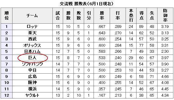 交流戦5位です。゜ヾ(´A`)ノ゜。 (8位・49516・4640・6/2)