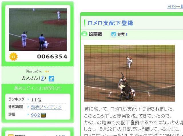 育成ロメロを舎人さんの動画で見た。(2010,6,16)