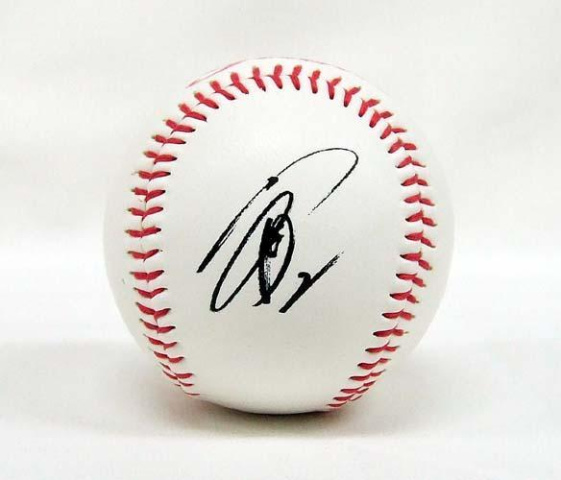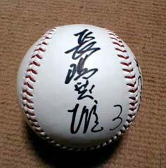 表面にサインがプリントされた硬球は持っていた。