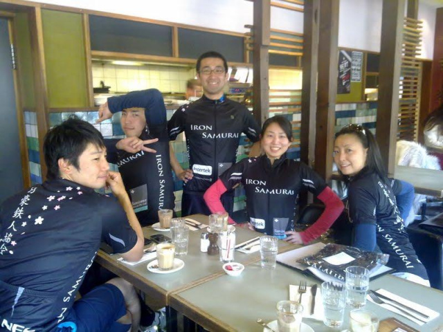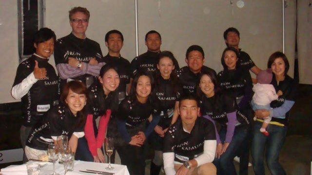 IRON SAMURAIは200x年に数名の有志からから始まった、名も無いチームでした。口コミでメンバーが増えてきたことをきっかけに、2010年にチームユニフォームを作成し、このときチーム名にIRON SAMURAIが命名されました。現在は20名強が活躍しています。まだまだ若いチームであり、ほとんどのメンバーがトライアスロン初心者で、アイアンマン・レースを完走したことのある人は、実はまだいませんが、トライアスロンだけでなく、マラソン、デュアスロン、遠泳、長距離バイクレース、長距離トレイルウォークなど、様々な大会に出場しています。日本に帰国したメンバーも、日本支部として活動報告をシェアしています。いずれも個人競技であり、最大の敵は自分自身ですが、合同練習や、応援、レース報告を通して、達成感や喜びが倍増し、チームワークの強化に繋がっています。最近では、4人のチームメンバーが100kmのトレイルウォークに挑戦しました。残りのメンバーは、各チェックポイントにて食事や着替えを準備するサポートクルーとなり、楽しみ支え合って無事チームとして笑顔でゴールを迎えました。