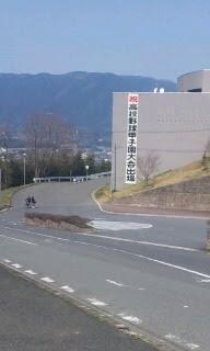 学校は本山の寺から少し坂を上ったところに立っている。正門から校舎やグラウンドは一段高いところにあるが、外周に沿った坂道を上りきったところからグラウンドの練習風景を見ることもできる。両翼95m。この日は紅白戦か練習試合をしているようだった。校庭の隅のほうでは女生徒たちがそれぞれ楽器を手に集まっておなじみの曲を練習していた。