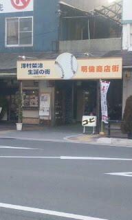 一駅先とはいえ、伊勢市駅から宇治山田駅までは歩いて10分程度。駅前に古くからありそうな小さな商店街があり、アーケードには「沢村栄治生誕の街」の看板がかかっている。