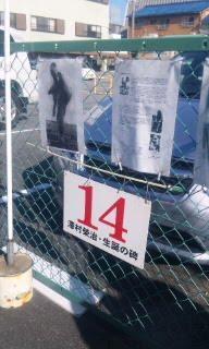 日曜日の昼間ということもあったのか、閉めている店が多かった。商店街の細い路地を抜けた先、今は駐車場になっている一角に、石碑が立っている。