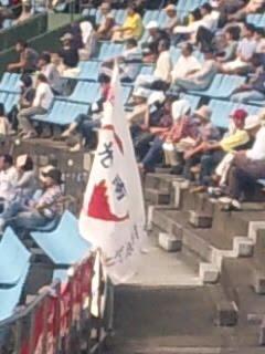 スタンド後方にはこんな旗が立っていて、何やら赤い鳥らしきものが書かれてあります。