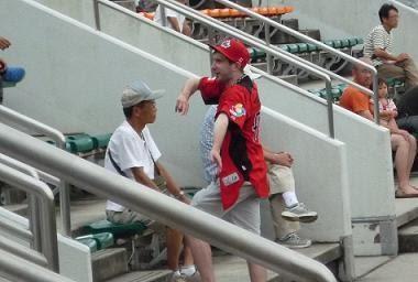 スタンドでちょっとした異国情緒を味わおうと思った矢先に、三塁側のスタンド辺りから、某球団そっくりの応援コールが耳に飛び込んできました。いるんだよな、こういうわが道を行くやつが…、と視線をやってみると、