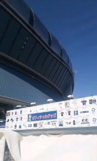 試合開始は夜なのでグッズ売場はまだ開店前です。