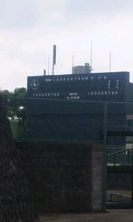 球場外周を一回り。うーん、こんな雰囲気だったかな?外野からバックネット方向を見た感じがなんとなく…(ホントか?)、現在のグラウンドは両翼100m、中堅122mということで、実はそこだけ見るとこまちと変わらない。一番の泣きどころは照明設備がないことだそうだ。