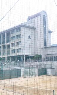 大阪から神戸方面へはJRで向かいました。中心街・三宮から3つ先の兵庫駅で降り、山手に向かって歩きます。このあたりは以前取り上げた市立神港高校も近くです。地下鉄上沢駅からやや西、新湊川の向こうに校舎が見えてきました。川を渡れば上り坂。この日はなぜかバッグを担いだ、20〜40代ぐらいの人たちがちらほら歩いていました。