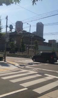 (交差点の向こうが市岡高校。後方には高層マンションとホテルが建つ)