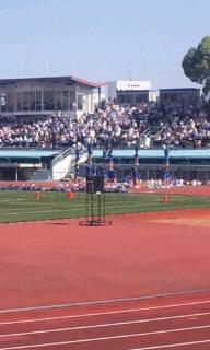 (こちらは関西学院のチアリーダーと応援スタンド。びびって遠すぎ)
