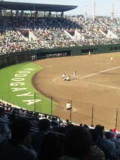 1点を返した桐蔭、その後の商大の攻撃を0でしのいでいるうち、今度は桐蔭が長打3本を絡めて一挙4点。5−5の同点で後半に入りました