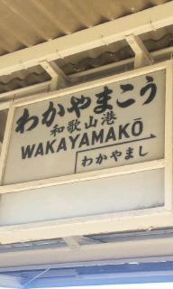 (年季の入った和歌山港駅の駅名標)