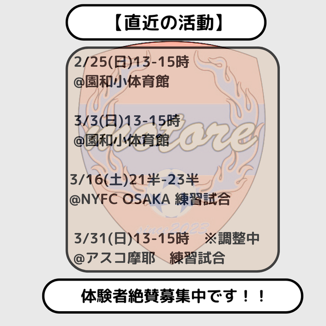2024年本格始動🔥 来期大阪府4部リーグへ参戦予定😁👍 現在メンバー募集中 ※現在14名所属 24年12月時