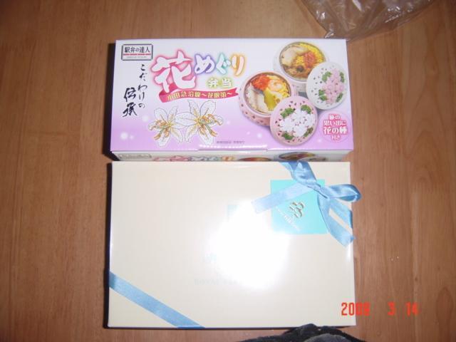 。 照明器具もピンキリですが、大体8000円〜12000円の間ですが、まだ壊れていないので購入は後日。その後は、TVの下見。昔あったテレビデオタイプ のTVって今の製品では、SHARPのブルーレイ内臓がお勧めだとの事。ただし、小さくて26型だって。でも約11万との事。こちらもアナログ終了まで購 入ストップかな。そしてその後は、スーパーで本来のお買い物である、ホワイトディの購入へ。2品、1つは駅弁(箱根湯本)を、2つ目は、横浜ロイヤルパー クホテルのお菓子セット。いつも迷惑掛けているので。今月24日で結婚生活丸8年、25日からは9年目突入です。いろんな事ありますがまだまだ頑張りま す。それでは、お(^о^〃)や(^О^〃)しゅ(^。^〃)みぃ(^-^〃)♪
