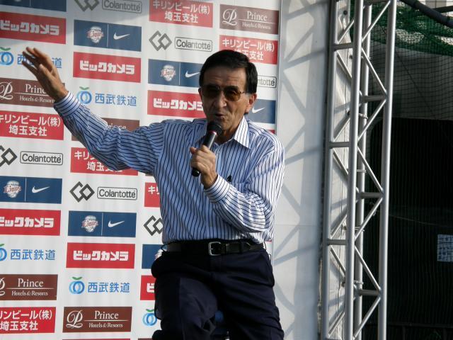 ゲストはプロ野球ニュースでおなじみの佐々木信也さん。 試合前のトークショーでは、人工芝が初めて登場した後楽園球場では芝の順目と逆目が交互に張られており守っている選手に取材したところボールが蛇のようにうねるなど苦労があったそうです。 このような球場の話を中心にしてくれました。