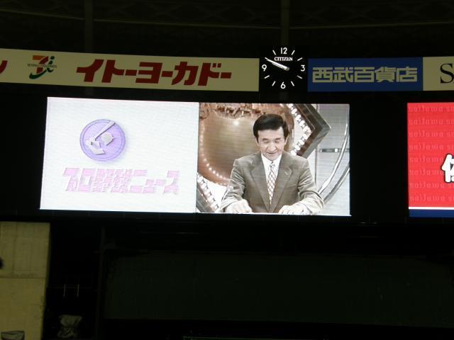 試合終了後は「フィールドナイト」!! Lビジョンに懐かしのプロ野球ニュースがよみがえりました。