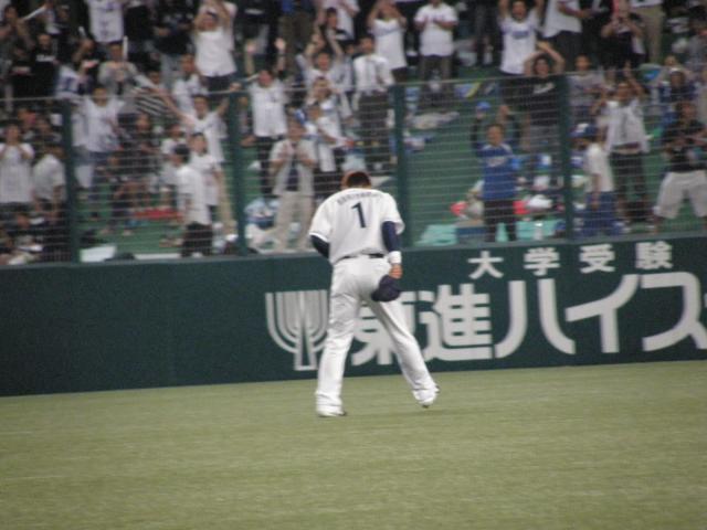 この日も投手戦。6回にローズにタイムリーを許す・・・ ライオンズは6回7回と得点圏にランナーを進めるも決定打が出ない・・・ また「見殺しか・・・」機嫌の悪くなる私の右隣の人(左のエースちゃん)。