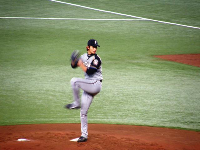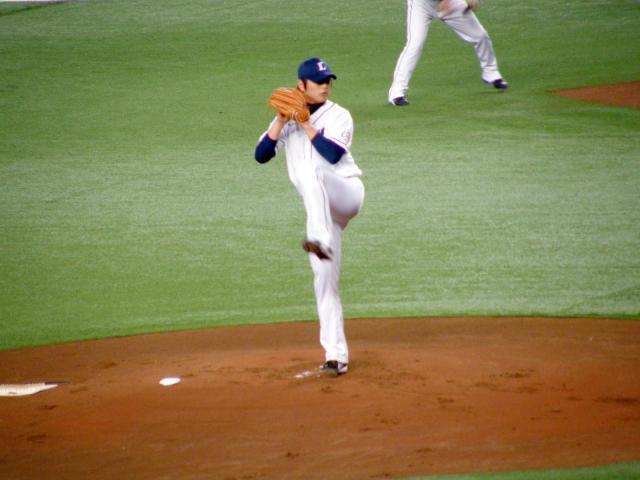 レジェンドブルーの新ホームユニフォームを着用してのこのマウンド。 初回は見事な立ち上がり。今日は投手戦になるかと思いきや2回には高橋信二に2ランを許してしまいました。。。 その後も3回4回と失点。 7回 9安打、4失点の成績。 先週、岩隈との投げあいを制しただけに今日も期待していましたが残念。。。