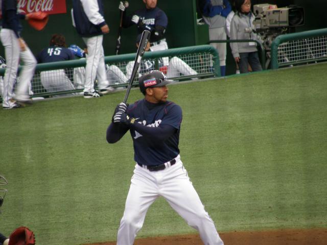 WBC代表組の復帰となるか! スタメン発表には3番青木の名が!! しかし、初打席いきなり代打、武内。 情報によりますと試合直前に身体に違和感があるらしく大事をとってお休みとの事、 ライオンズの中島、片岡も出番なくWBC代表は見られないかと思いましたが。。。