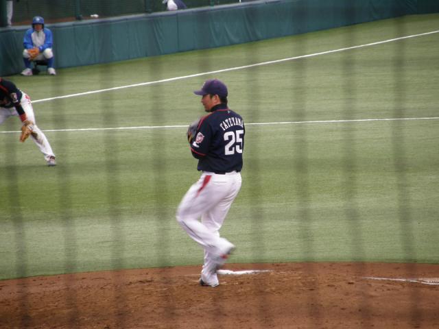 で、オープン戦が見ていられなくなったので途中3回終了時にお隣、第2球場でやっているイースタンリーグに逃亡。 こちらの試合は5回まで進んでいて5対1でライオンズリード。 投手はスワローズ松井。ライオンズ、ワズディン。 ワズディンの調子はとてもいいと感じました。 今すぐ西武ドームのマウンドに上がってくれ! 、と心の中でつぶやいてしまいました。