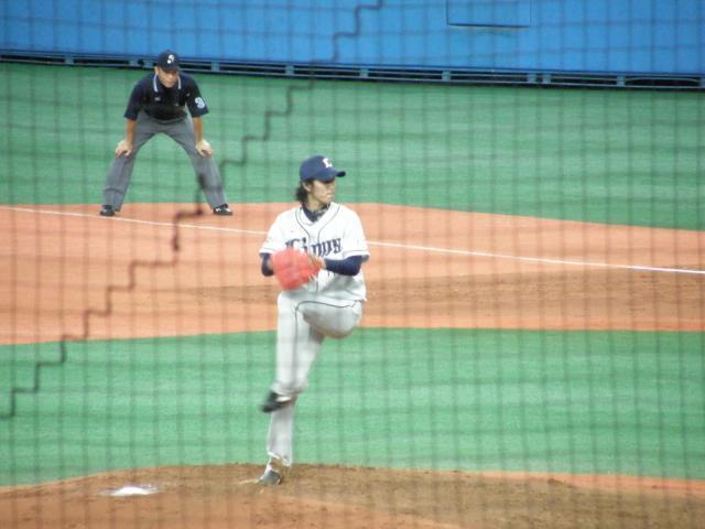 7回裏にはライオンズはピッチャーを岸から山本淳にスイッチ。