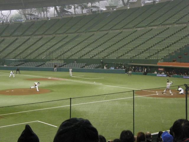 このところ不安定な天候が続いているため試合の会場は一週間程前から第2球場から西武ドームに変更になりました。 気温が低い平日の昼にもかかわらず沢山の人が西武ドームを訪れていました。