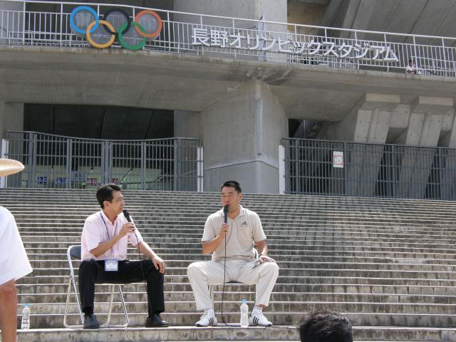 そんなこんなでオリンピックスタジアムに到着。西武ライオンズOBの大塚光二さんのトークショーが行われていました。 清原の事、五輪代表が抜けて後をどう戦うかなどを語っていました。 暑い中お疲れ様です。 さてスタジアムについてはまた別の日記で。試合の様子は観戦記を見てください!http://baseballsns.jp/member/11128/match/4789/