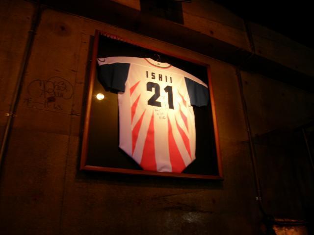 レストランバー「JESTーInn」というお店。 ここは昨年オフ、Jスポーツの「がんばれ日本プロ野球」という番組で石井貴、涌井、金村義明、大塚光二の対談に使われたお店。 店内には松坂大輔。 石井貴、清原和博、星野智樹、中島裕之、のユニフォームが飾られています。