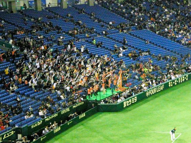 そして応援もおもしろかったです。内野スタンドでの応援スタイルは社会人野球などを思い出させます。また応援歌は日本でポピュラーなものを使っています。「ポパイ」とかあとロッテファンの方にはお馴染みの西岡選手の応援曲、ホ〜セホセホ〜セの曲などでもあの曲には原曲があるんですよね? 一番驚いたのは、かつて西武が清原の応援に使っていた曲。現在チャンステーマになっているものが奏でられているのにはビックリしました。あの曲はオリジナルですからね。 西武の歴史を誇りを感じる一瞬でした。