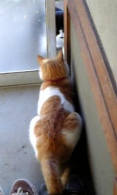 前回の写真じゃわかりづらかったですが、猫が玄関はさんで向き合っています(笑)両方とも私の家の猫じゃないんですが・・・
