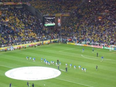 で、代わりに何かと言うと、そう私の人生において唯一にして一番の思い出・自慢の、2006年W杯ドイツ大会の日本VSブラジル戦ドルトムントのスタジアムで撮った映像ですヾ(゜∀゜)人(≧ω≦)ノノ今回二枚載せます。次回も載せますのでお楽しみに〜