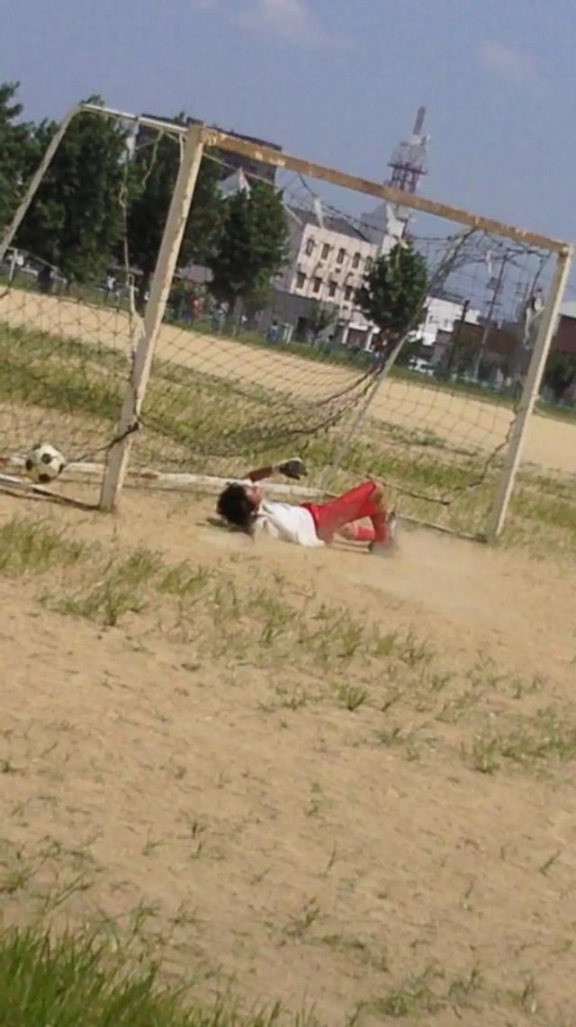 ぼくはタルイくんのズタボロにされてもボールに向かっていく姿に惚れた。キーパーは赤の上下のライン付きイモジャーで、背中には[GK垂井]と縫い付けてある。ダサい!と思った。