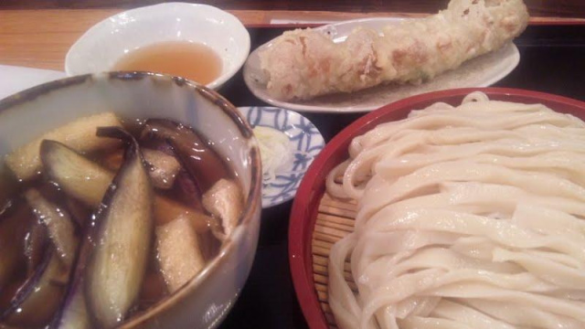 いつも食べてる肉そばではなく、茄子汁つけ麺うどんとやらを注文。