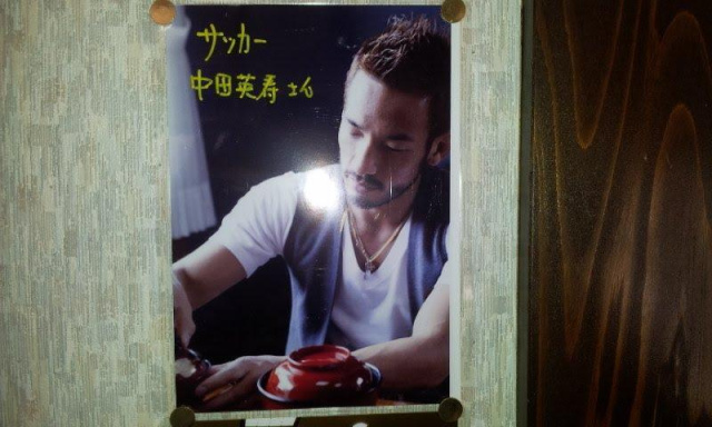 なんと色んな有名人がここまで食べにきてるじゃないですか。その中でもひときわ目にひく中田さんが飾ってありました。(・・;)