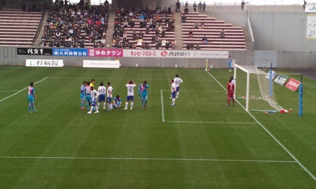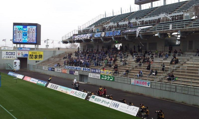 この司令塔的な二人が居ないガンバがどう今季から昇格のホームの鳥栖を攻略するか。戦力的には、日本代表の二人が居ないガンバだけど、鳥栖に比べたら十分な戦力。鳥栖の強みは、昨シーズンJ2で戦った選手がほとんど残留し、連携面はガンバに負けていない。4759人の観客。awayのガンバのサポーター。(^-^)
