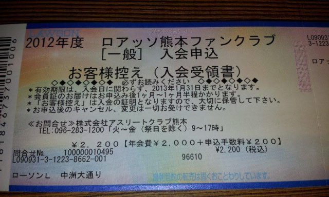 熊本は後援会はないが、ファンクラブは、ある。価格はLAWSON購入で2200円。