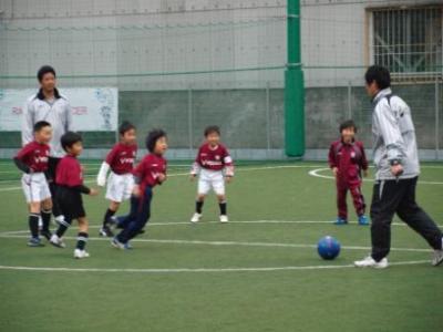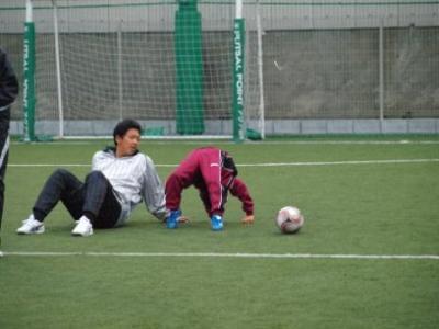 それからセンターサークル内でコーチの出したパスに当たらないように逃げるっていうゲーム?をしてました。