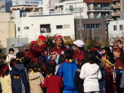 玉入れ競技で最後玉を早く片付けたほうが勝ちということで、みんなでお片づけ。