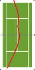 アドコート側からのファーストサーブは最近練習中のセンター狙いの速いスライスサーブ。曲がりながらセンターライン付近にバウンドした後にもさらに曲がってセンターラインの延長線上の支柱より左側の金網に当たるように練習します。予想してないと絶対届きません。