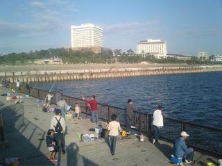 写真1:釣り人もたくさん。後ろの建物は舞子ヴィラ