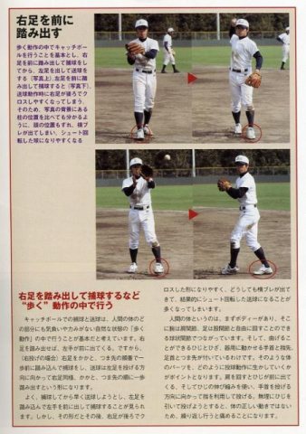 右足を前に踏み出して捕球、そして左足を出して送球。