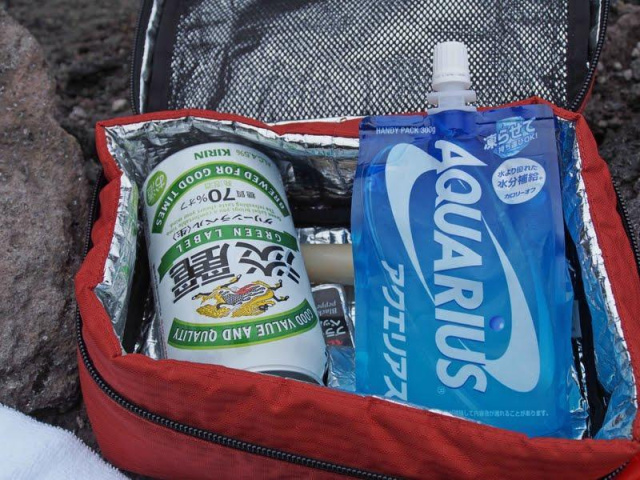 保冷剤に、アクエリアスを凍らせて入れています。