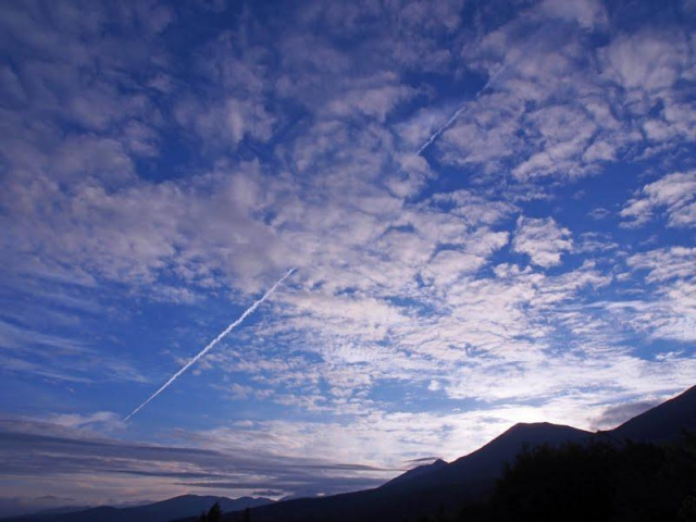 綺麗な青空に・・・・飛行機雲 5:30ですよ。