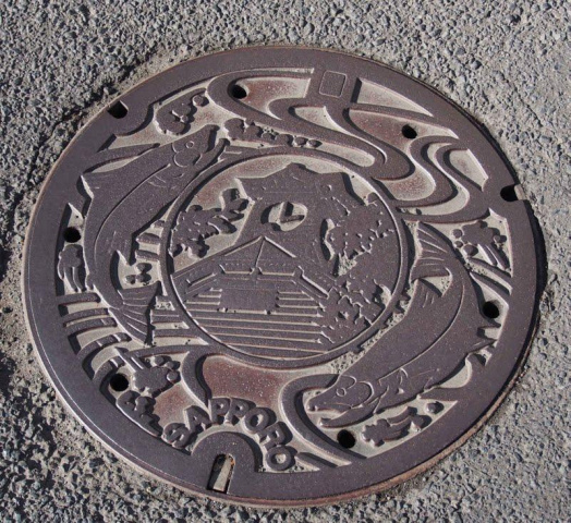 札幌市のマンホール 時計台と鮭