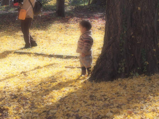 影とイチョウのコラボ