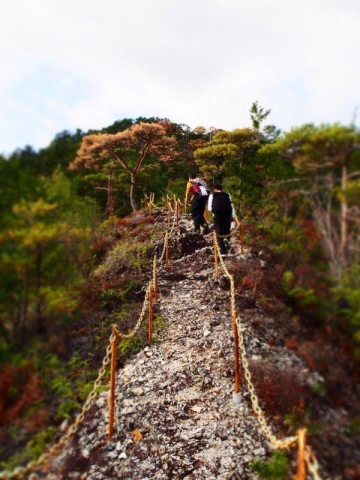 宇連山は、細尾根には鎖があり、登山道も