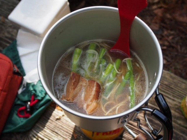 マルタイ棒ラーメン・豚の角煮・アスパラ・ひろPonが作ってくれた味玉