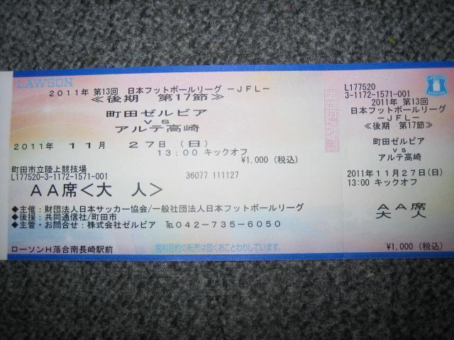 チケをいただいた 町田ゼルビア VS アルテ高崎JFLの試合です