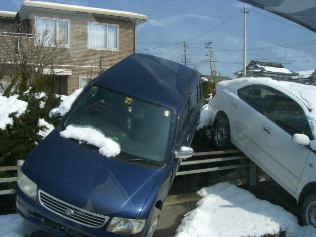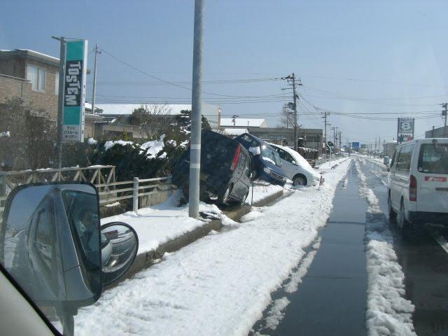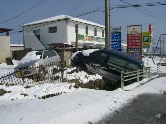 道路わきには、津波の爪あとがいたるところに