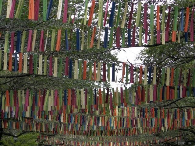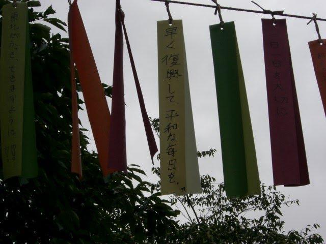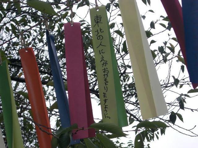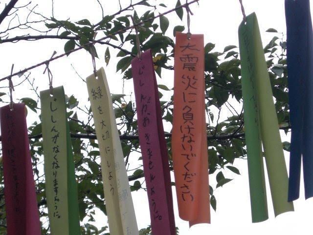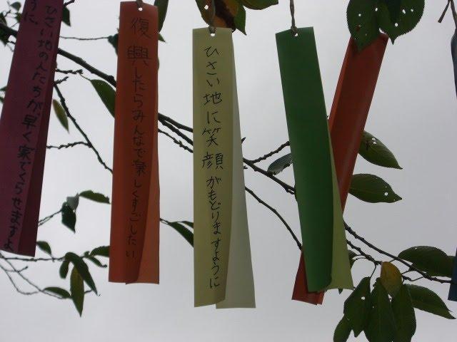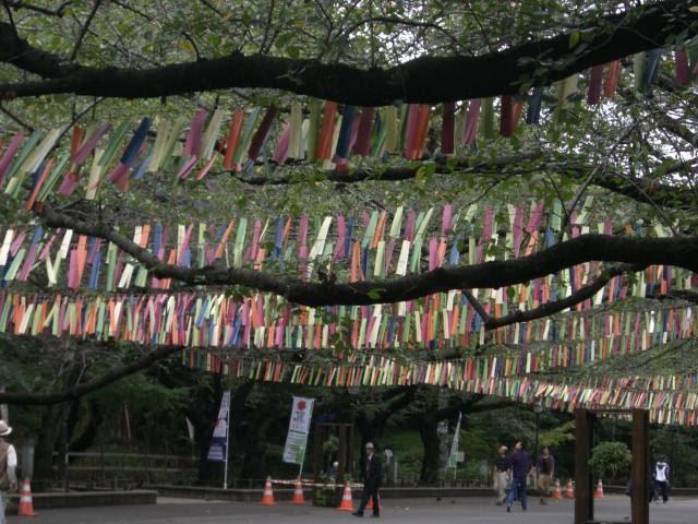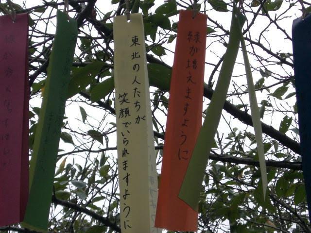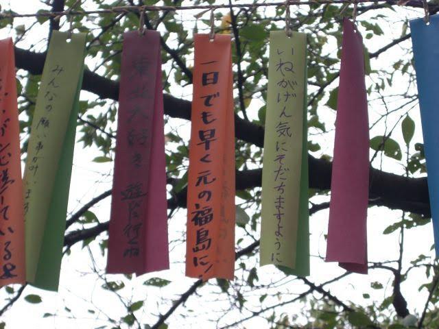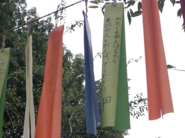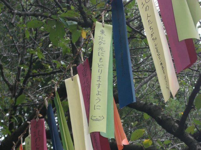 がんばれ東北の短冊がなびく上野公園